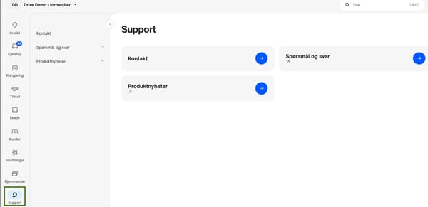 Kontakt vår Support ved å sende e-post til [email protected], bruk skjemaet nederst på denne siden eller benytt chat-boblen inne i Drive Dealer.