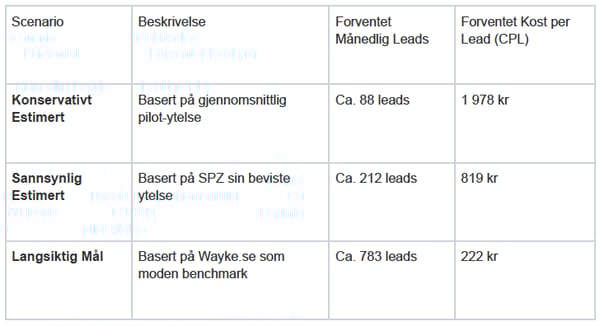 Den svenske markedsplassen Wayke.se, med en konverteringsrate på 0,20 %, representerer ikke et urealistisk "best case". Det er en dokumentert "best-in-class"-referanse fra et modent og direkte sammenlignbart marked. Wayke viser det langsiktige potensialet når datakvalitet og budsjett når et visst modenhetsnivå. Denne reviderte tilnærmingen erstatter et bredt og usikkert spekter av utfall med et innsnevret og langt mer troverdig beslutningsgrunnlag. Nedenfor kvantifiserer vi hva dette betyr i praksis.